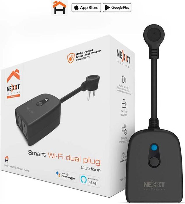 Nexxt Smart Home Wi-Fi Outdoor plug - 2 Outlets, App Mangaement, IP44 Dust & Waterproof, voce control Alexa & Google (Black Colour) -- 2 Year Nexxt Warranty